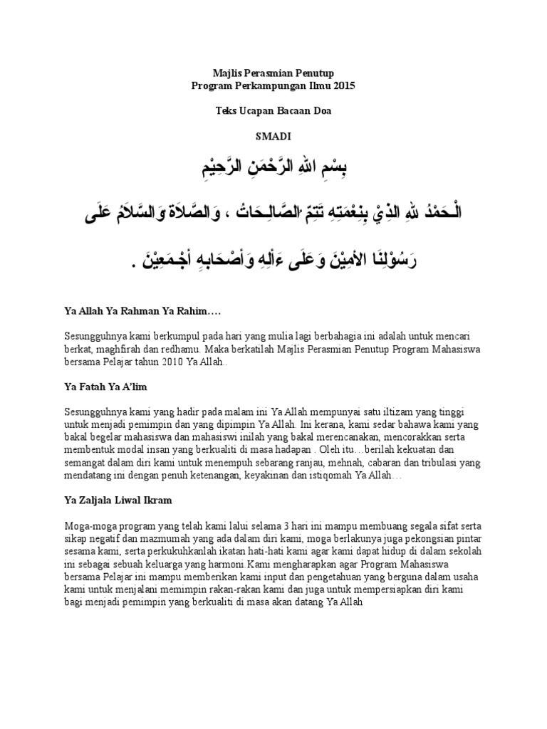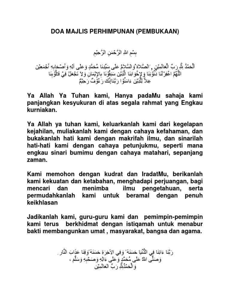 Doa Majlis Perhimpunan Pembuka At Penutup Pdf