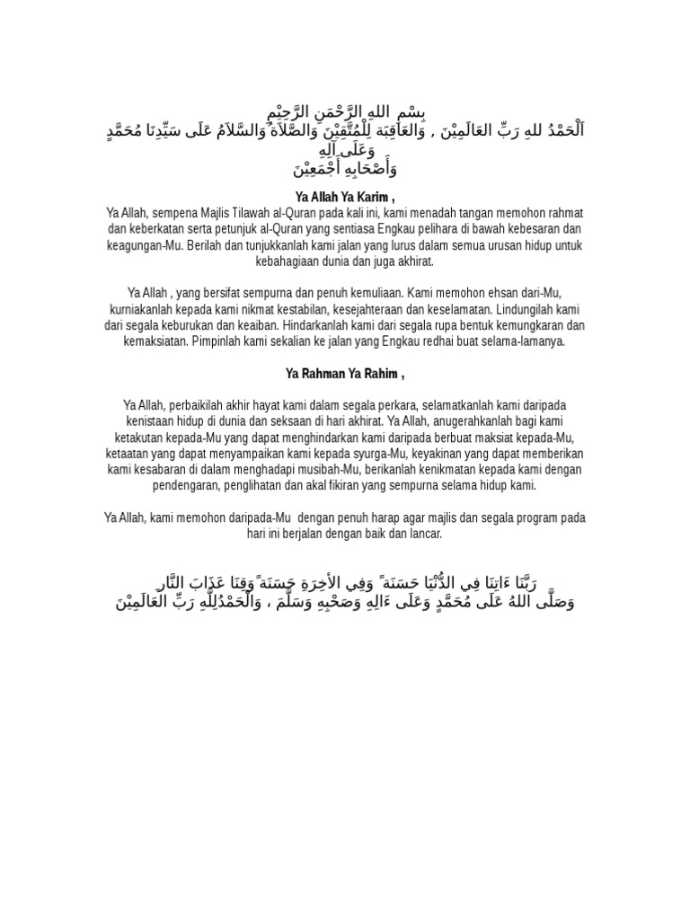 Doa Penutupan Majlis Tilawah Al Quran Pdf